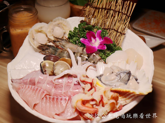 扇貝、膠原曼波魚皮、蘭花蚌、特選草蝦、嚴選鯛魚片、船釣活凍軟絲、北海道生食級干貝、東石鮮蚵(依季節變化會略有不同)
