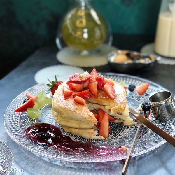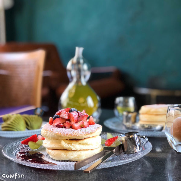 在茶館裡享用好吃的舒芙蕾鬆餅✨