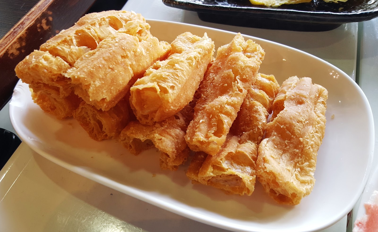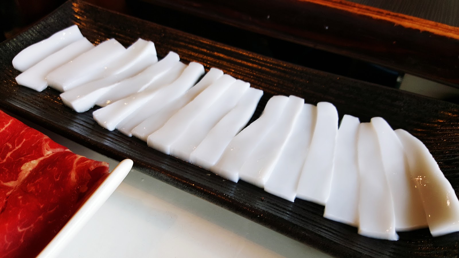 食材都是單點,選了兩樣肉、一個蔬菜盤、手工蛋餃、花枝漿、曼波魚,還有麻辣鍋必備油條和大腸頭,鍋底的豆腐和鴨血是可以無限續加的。