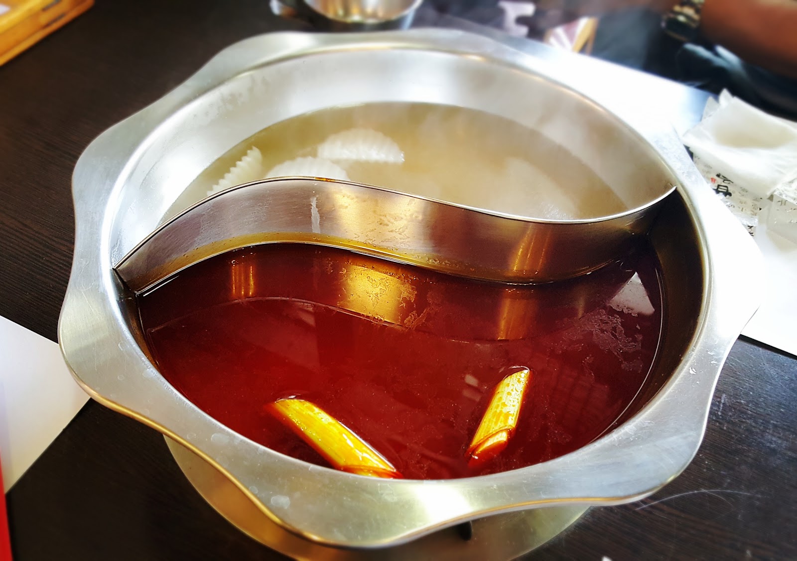 共有三種鍋底,川味麻辣、天麻藥膳(不辣)、昆布豚骨雞湯,任兩種可以組成鴛鴦鍋。兩次來都是選川味麻辣+昆布豚骨雞湯,天麻藥膳還沒有嘗過。午餐時間還可以選擇個人套餐,想吃麻辣鍋自己一個人也大丈夫。川味麻辣鍋有用牛肉調味,不吃牛肉的要注意哦!