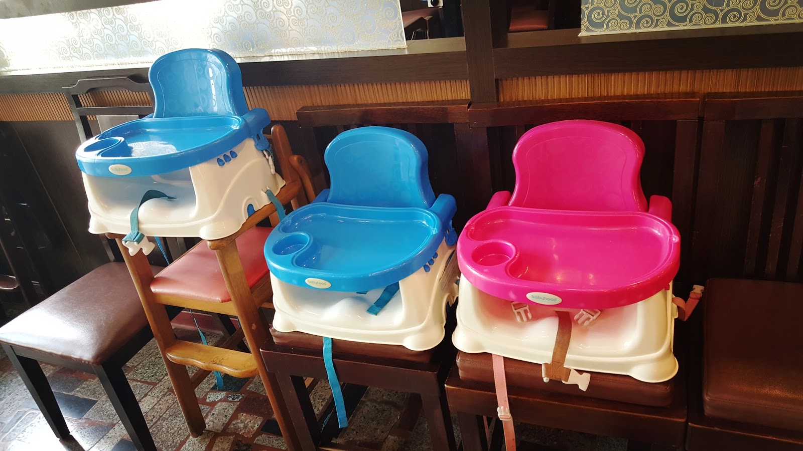 帶著小小孩總是會注意一下店家是否有兒童椅,甘家院子很貼心提供兩種,上面這種塑膠椅需要綁在椅子上,有安全帶固定,一歲以下的小朋友適合坐這種;另一種木頭高椅給可以獨立進食的很好的孩子。