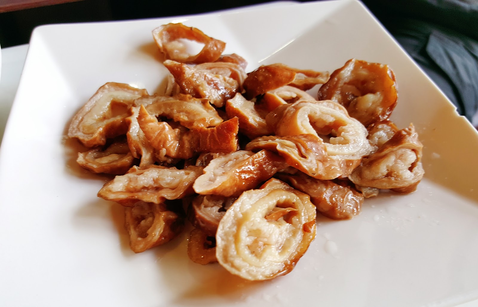 肥腸是已經滷熟了的,再丟進鍋裡燙一下即可。滷得很透口感軟Q,煮麻辣鍋很搭,放在昆布鍋裡也好吃。