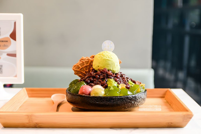 chic chic 就位在板橋的中正路上,從板橋站步行大約要12分鐘抵達,店家的對面就是通往小潘蛋糕(食記請點我)的小巷子,通常我們都在週末下午來搶買小潘蛋糕,今天提早了一點,先來吃個冰,喝點涼的,然後再悠閒的去小潘買蛋糕