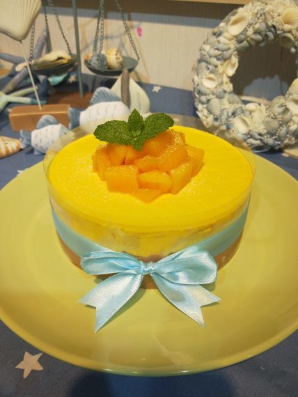 老師們精心研發出ig討論度極高的「瀑布蛋糕」,食用前抽起圍邊就可以欣賞到芒果與鮮奶油交織而成的瀑布,瞬間佈滿香甜綿軟的海綿蛋糕,是一款兼顧視覺饗宴與味覺火花的夏日甜點❤️
