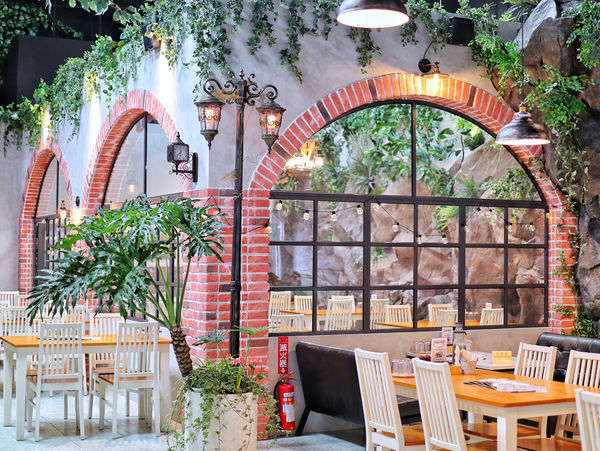 獨棟的挑高設計,入內空間比想像中廣闊得多,歐式莊園風格與花草藤蔓結合,彷彿來到童話中的城堡了,
