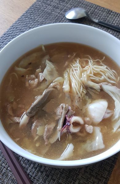 湯頭很香,一入口會先嚐到醋的酸味,後面會有扁魚的焦香味,其實很難形容它的味道,每一口好像都不一樣的感覺
