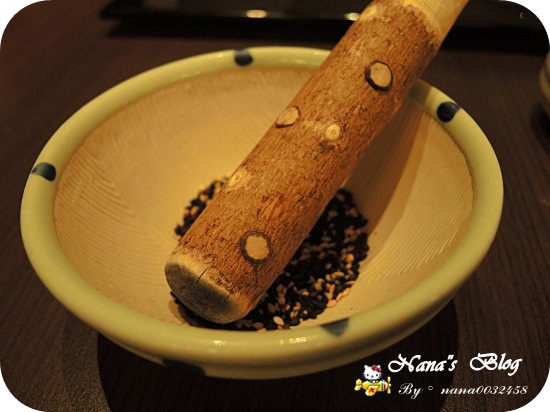 桌上還有準備教料用的芝麻,日式的缽而外附一支木棒,等待時間,就要拿起來~磨押~磨押~