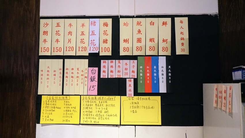 👆冰箱旁的牆面有標示肉類食材與海鮮食材的價格,