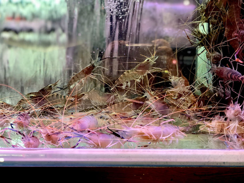 在水族箱裡遨遊的蝦蝦們,仍然很悠閑的游來游去,還不知道他們等一下的命運就是要煮成好料端上桌被我們吃下肚了,雖然於心不忍,但很難抗拒美的蝦子們,先為他們默哀一分鐘