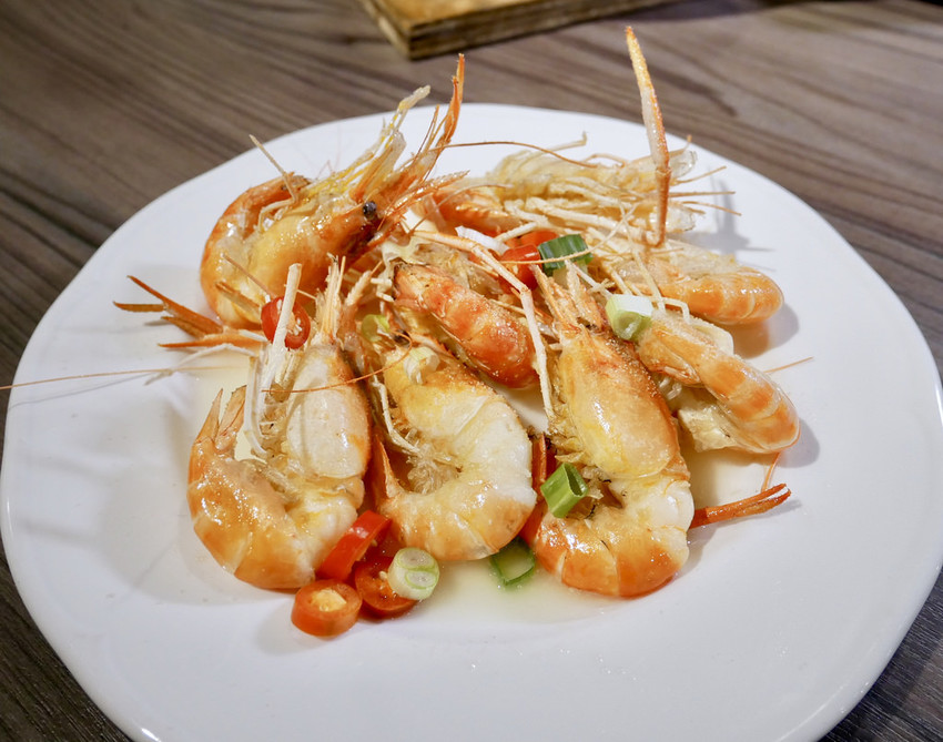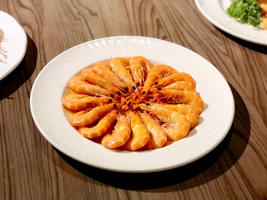 紹興醉蝦 – 將白蝦以埔里的紹興酒浸泡,蝦肉帶點微微的酒味,保有Q彈,只有酒香而沒有酒意