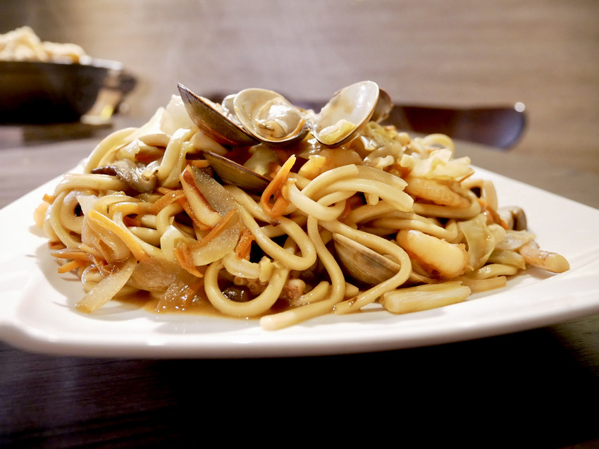 易鼎炒麵 – 使用蛤蠣、蝦仁魷魚和麵一同快炒,麵條入味不軟爛,份量滿多的