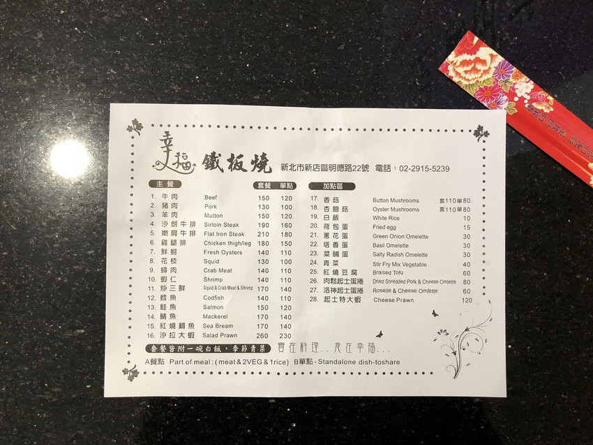 新店七張這公司行號多,上班族也多,中午吃飯時間出來覓食的人更是不少,本來已打定主意要吃的餐廳居然客滿,而且滿到爆炸,於是決定吃附近的這家幸福鐵板燒