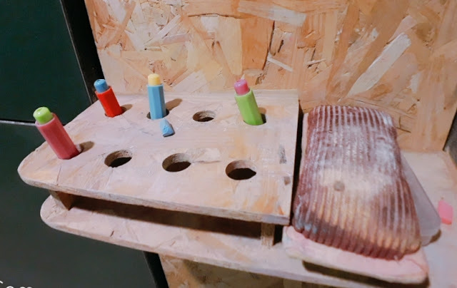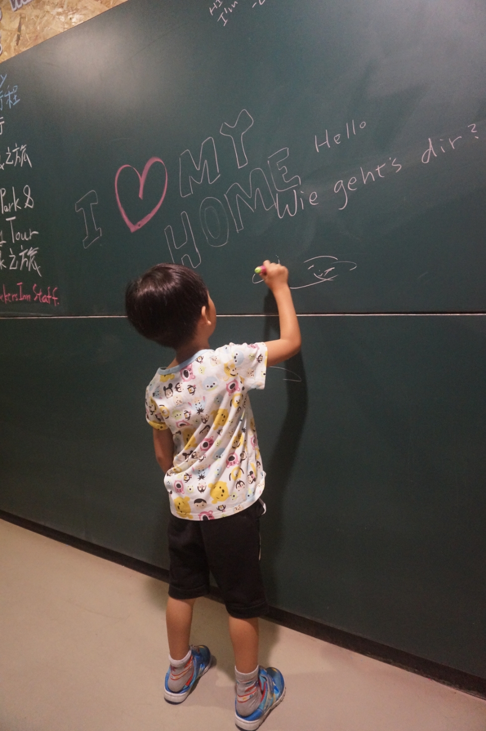 附有各色的粉筆供塗鴨或留下想說的話,例如:屎蛋爸愛屎蛋媽,這種真心的留言!