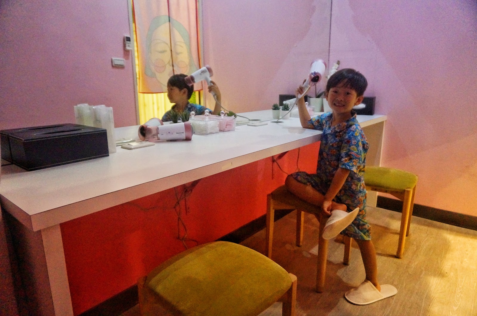 洗完澡後的屎蛋媽發現了一處女性秘密基地,在5樓女生樓層有女孩專屬的化妝間,裡面備有化妝棉、棉花棒等簡單備品,讓女生可以在粉紅色的小空間化妝、打扮、保養,不用擠在廁所梳妝,實在是好貼心的設計。
