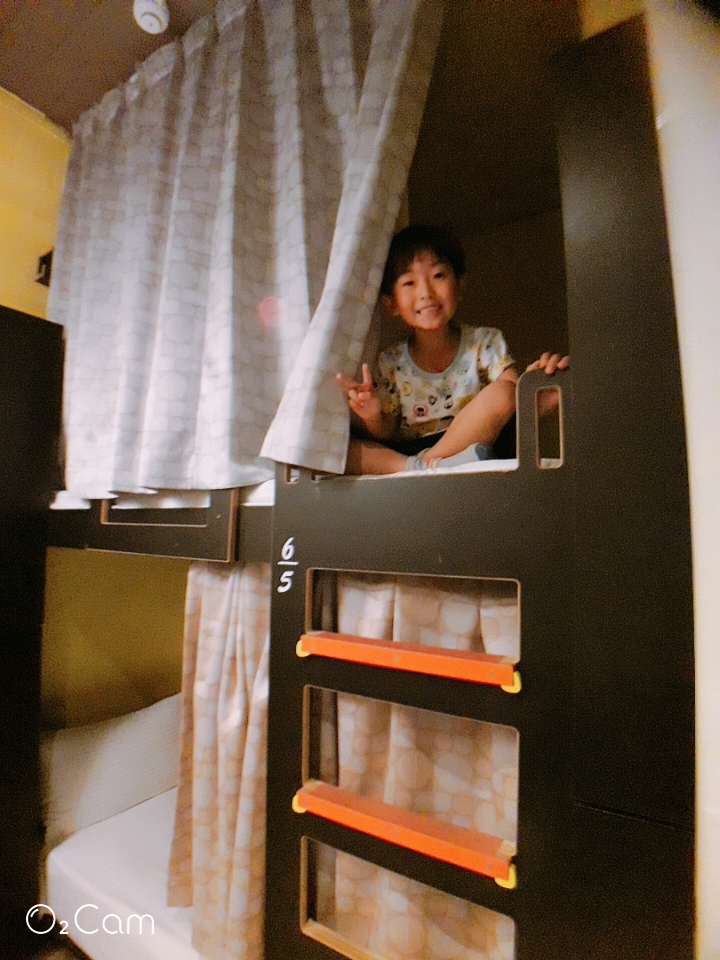 背包房上鋪的高度不高,5歲屎蛋也能輕鬆爬上爬下!