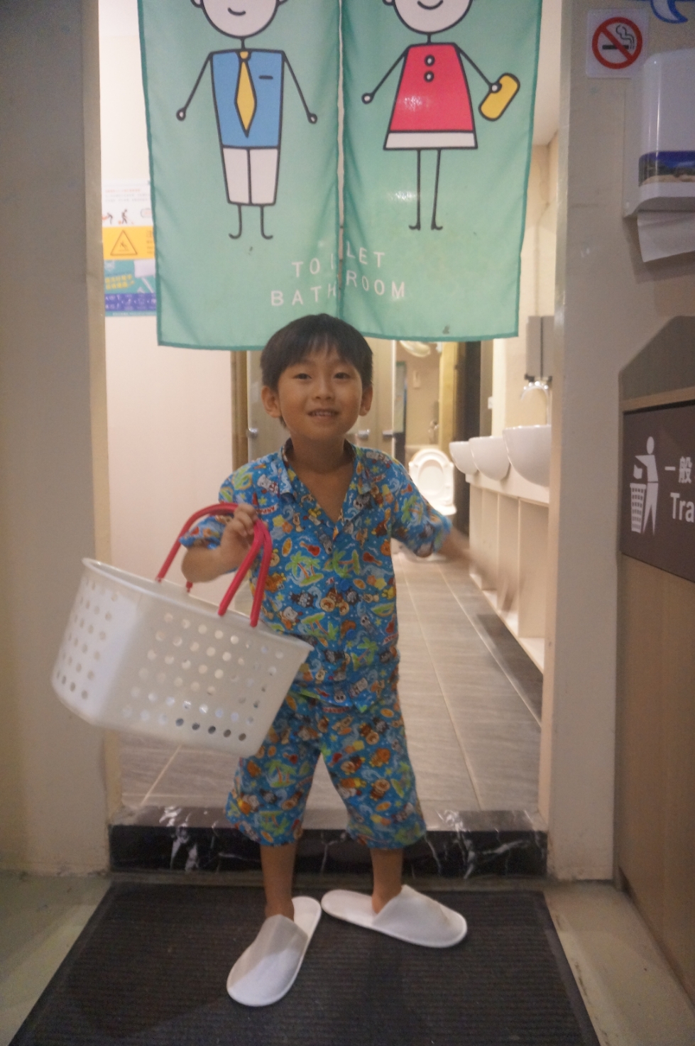天色晚了,回到貝殼窩台北青年旅舍,準備洗澡了!貝殼窩台北青年旅舍的浴廁有提籃,方便盛裝衣服、備品做使用。