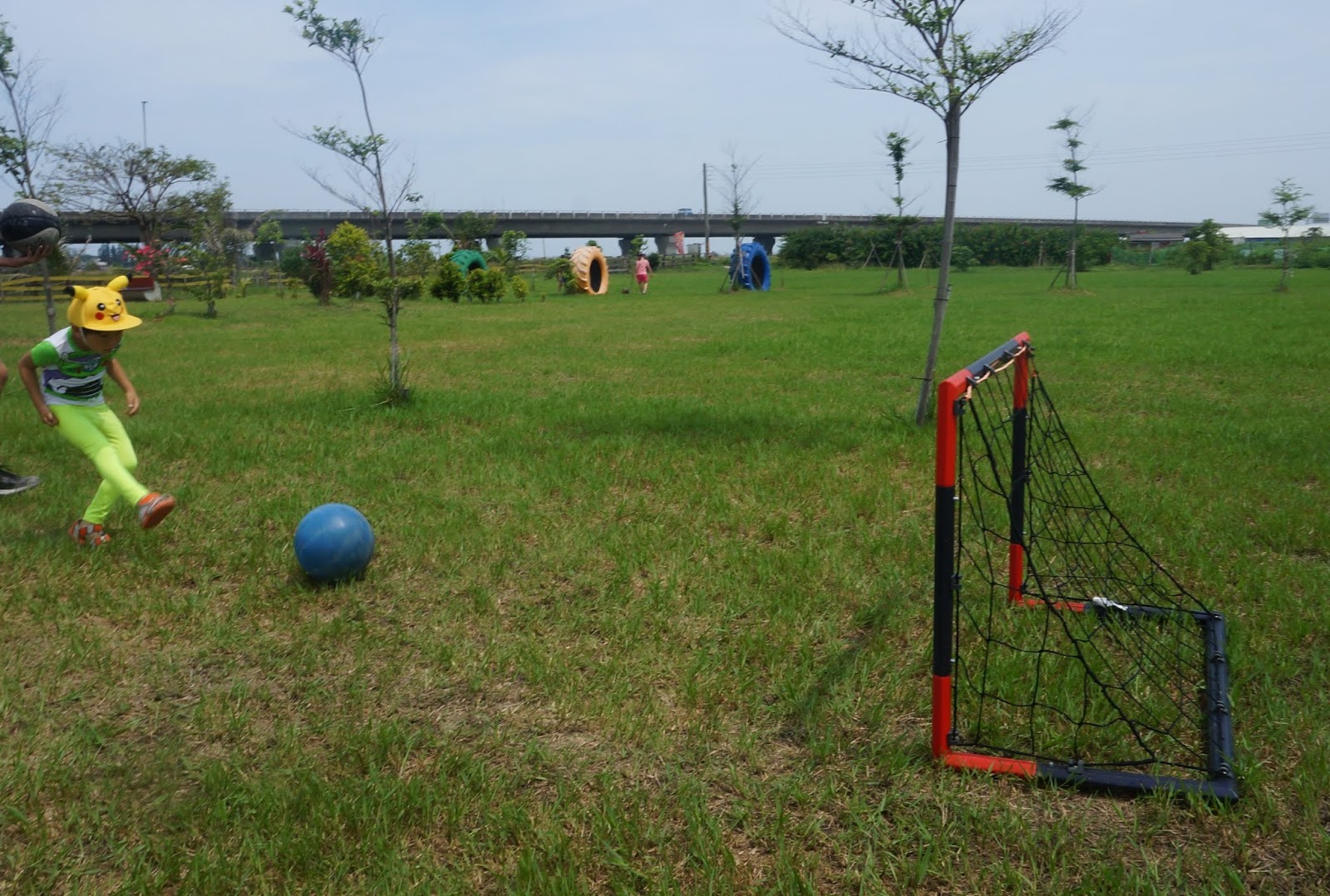 [體驗岸上活動]馬沙溝農夫的家有超大的草坪,踢足球、用力奔跑都很可以!屎蛋人已經不知道衝到哪裡去了!若有公司或社團要舉辦旅遊活動,馬沙溝農夫的家超大的場地,也是個好選擇。