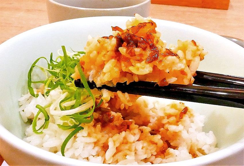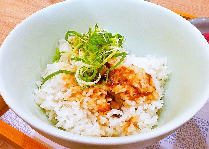 雞汁飯散發出迷人的香氣.與油蔥和青蔥拌著一起吃.超對味的!