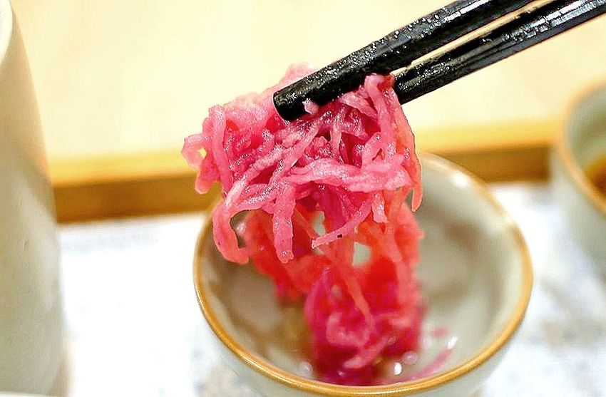 店家手工醃製洛神.很天然,完全無添加任何色素吃起來清爽又涮嘴.搭配著雞湯配著吃,很不錯!