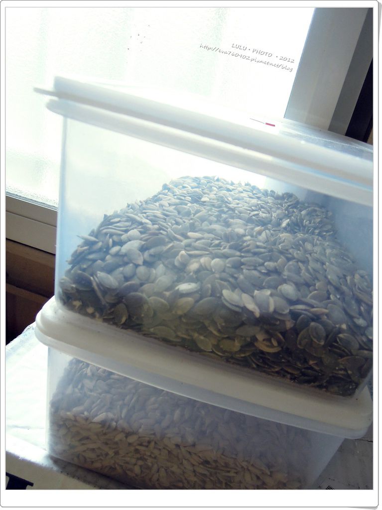 窗邊放著製作麵包的南瓜子仁,