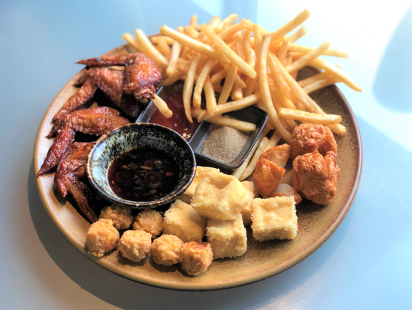 有薯條、雞翅、雞米花、豆腐以及花枝丸