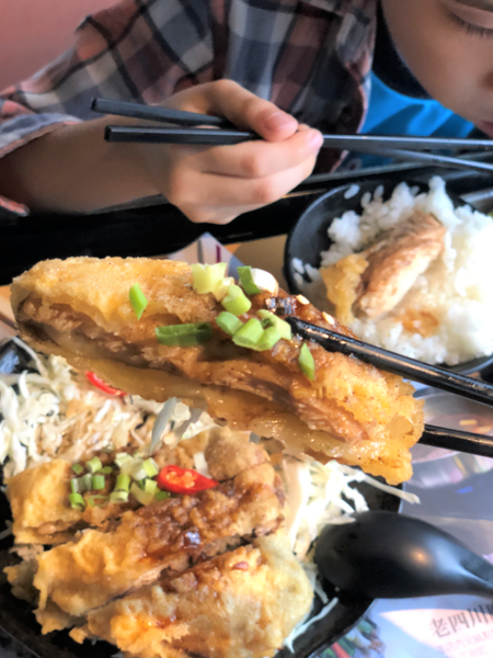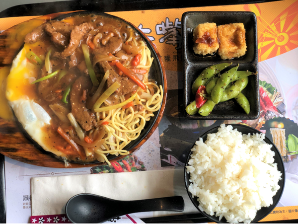 這份量不小喔,除了一碗飯,還有鐵板麵