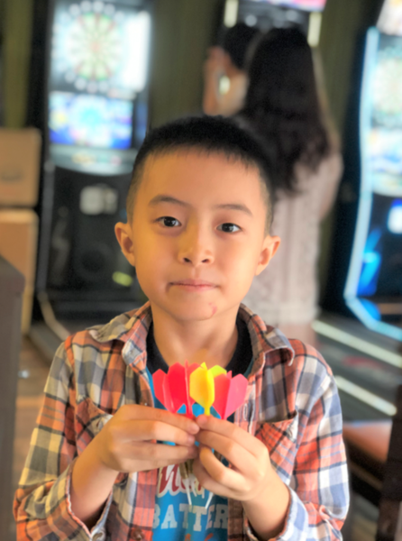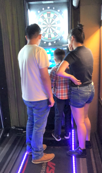 這男孩看到飛鏢機,