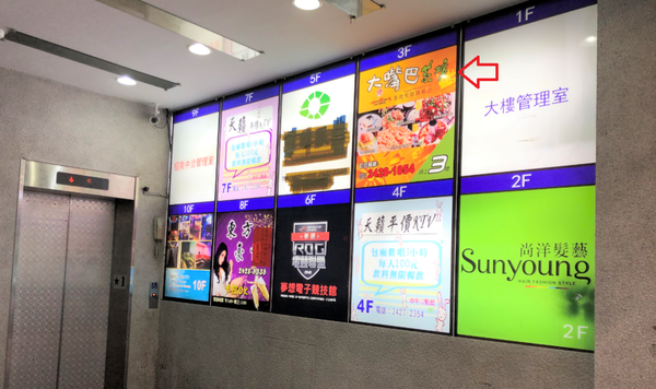 ▼來到騎樓後就會看到招牌以及電梯口囉