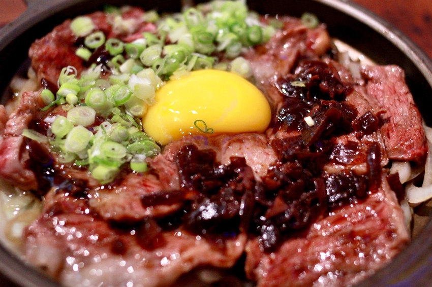 牛肉油質較少,口感也嫩細不會太乾,單一牛肉搭配著蛋液一起吃,滑順口感真的很讓人難忘,或是搭配著酒客串燒GOOD TASTE特調的醬汁、底層的洋蔥來吃,也很不錯。