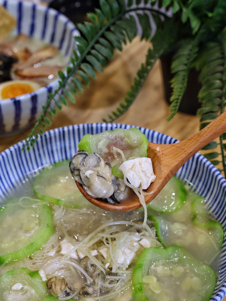 ▫️鮮蚵、絲瓜都是傳統料理很常出現的食材,牡蠣有著來自大海的牛奶的稱號,營養價值滿點,店家放在清淡的麵線裡面,我覺得相當大膽,畢竟這是要足夠新鮮才行,不然一點點腥味可就一覽無遺,而這碗我沒有吃出任何腥味(掌聲)麵線不是壽麵那種極軟,而是帶有線條感的口感。