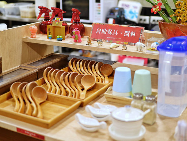 這邊免收服務費,先找到位置、點餐、用餐、最後記得要回收餐具喔!