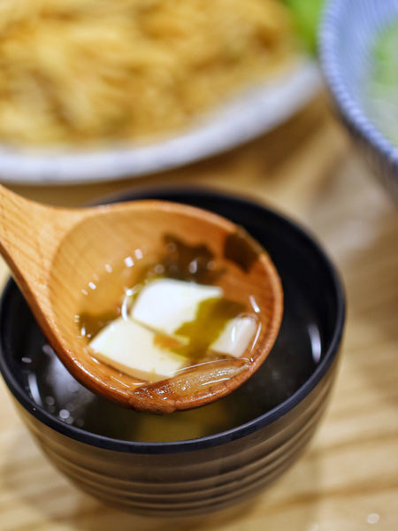 ▫️最後這碗是看大家都一致推薦必點的麵食,小提醒:月見是生蛋黃,敢吃再點喔!麵條是微粗、有彈性的細麵,炸醬有點微微的辣度,均勻攪拌後濃稠的醬料緊緊的巴上每一根麵條,鹹度跟香氣都是一等一,口味跟粥比起來相對較重,愛吃重口味的來這裡也能滿足。