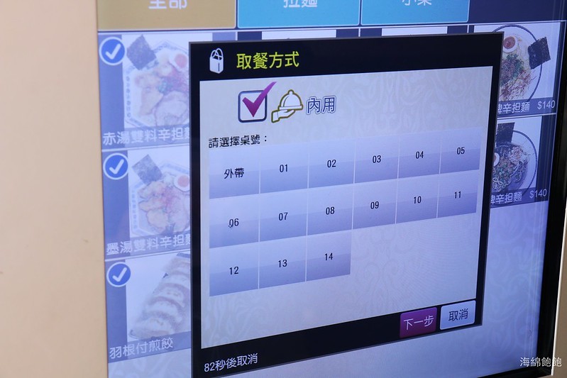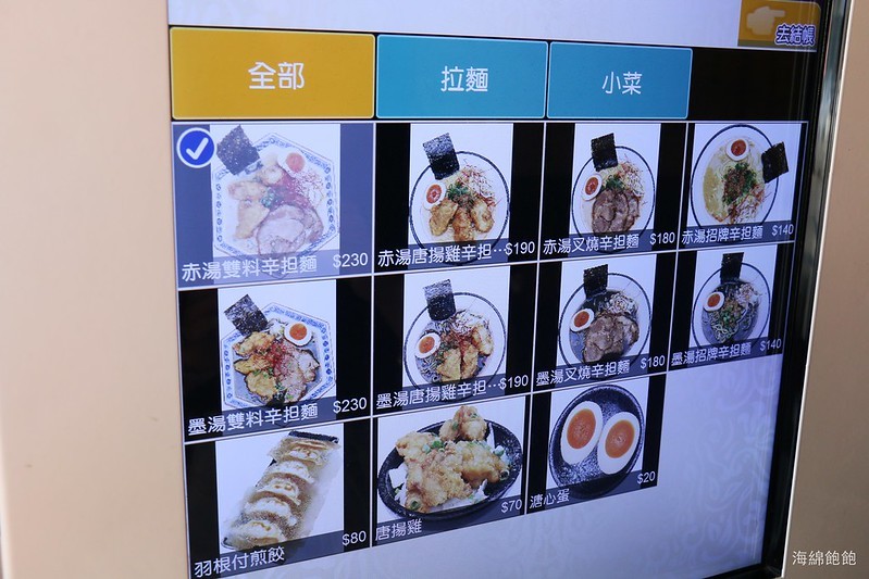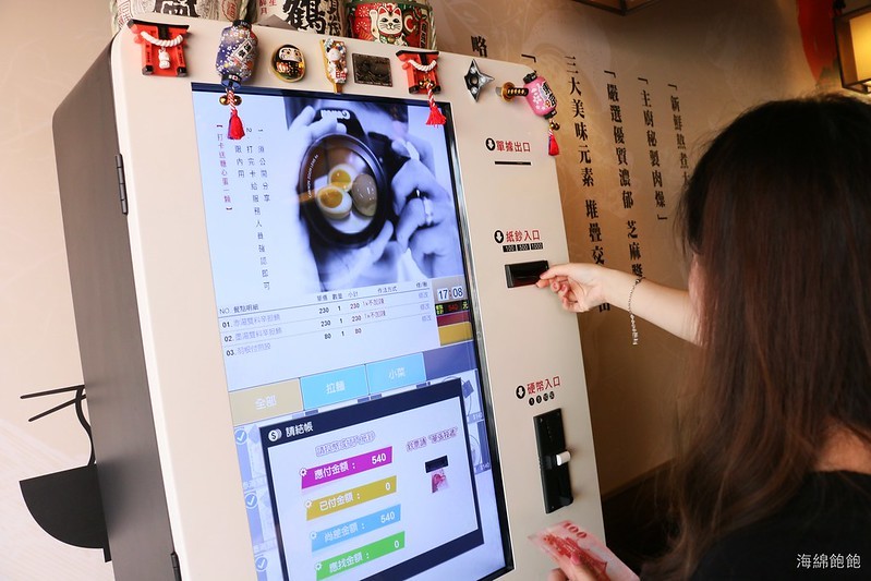 使用投幣式自動點餐機點菜,餐點主打拉麵跟煎餃