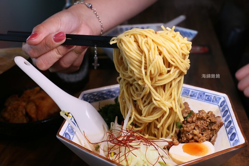 招牌辛担麵搭配的是叉燒,也可選擇唐揚雞辛担麵