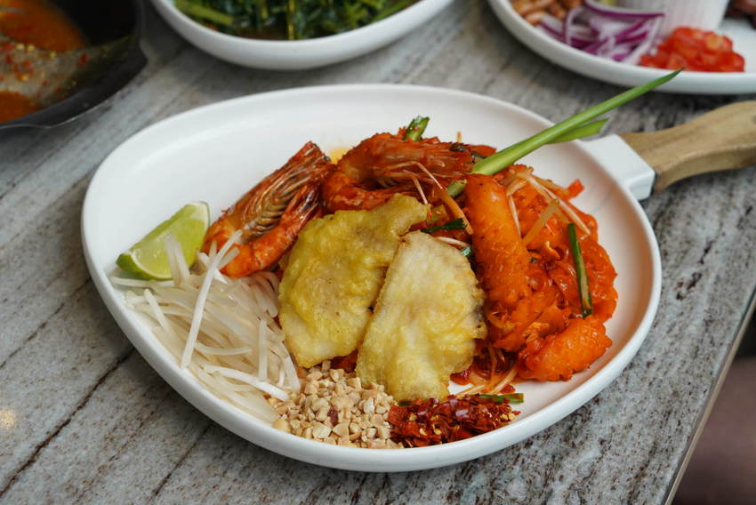 有開胃菜,有主食,當然少不了湯品,我們點了泰式酸辣海鮮清湯,湯頭有加入蝦膏下去熬煮,且使用新鮮檸檬汁,以及各式香料還有香茅、檸檬葉的調配,海鮮給的大方,酸辣的湯頭真的很開胃!