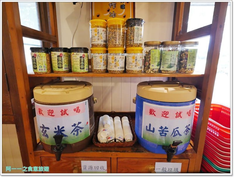 若逛累了可來杯免費玄米茶或山苦瓜茶,
