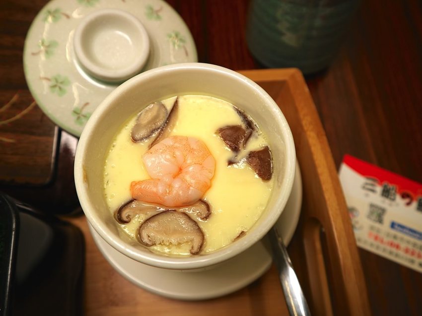 這份茶碗蒸,我們超滿意!蒸蛋好嫩好香,裡面好多料,有香菇、肉、大碗蝦仁… (為了這個蒸蛋,很值得加價升級套餐!)