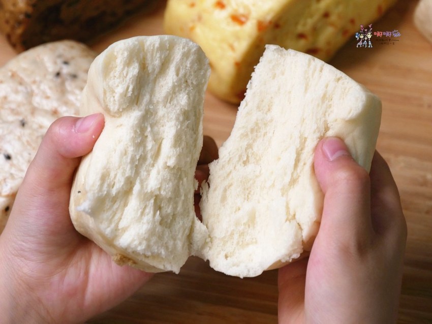 那我們就來看看其他饅頭吧!紐西蘭鮮奶饅頭應該是餐桌上的必備款了,帶有淡淡奶香和麵香的混合,夾蛋夾肉鬆都好吃。令我驚訝的是他們的饅頭竟然還挺好吃的,口感軟中帶Q有一點點的嚼勁兒但又不會太硬,可見得他們在產品下了很多苦心。