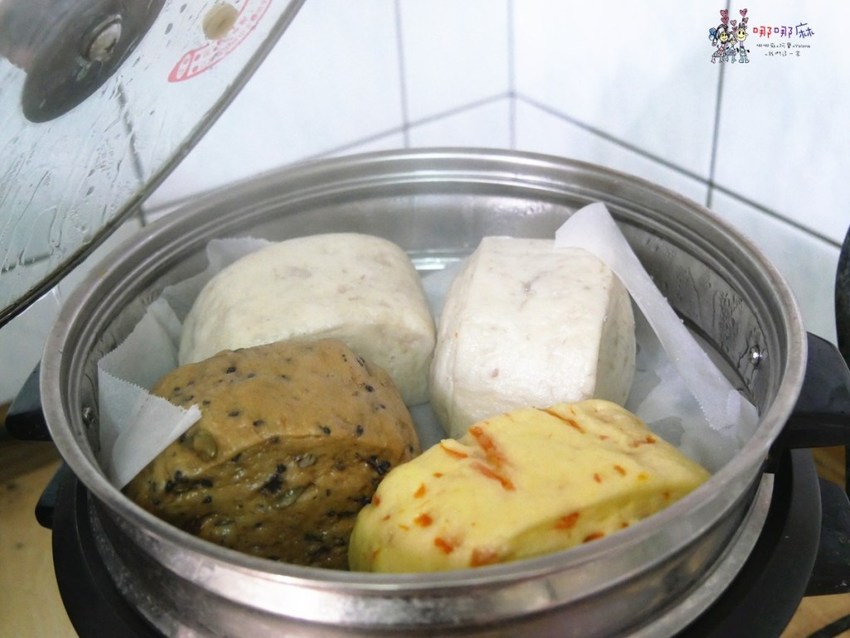 各挑一個出來後我就把他們放進電鍋裡蒸了,幸好我的電鍋上面還有一層蒸籠,不然這麼多還真的裝不下啊!正常人也不會像我這樣蒸饅頭吧,應該是蒸個幾個擺桌上當早餐什麼的。蒸了大約十來分鐘我們的饅頭好了,打開電鍋馬上聞到那甜甜的麵點香,哪哪麻的爺爺是外省人,小時候總看到爺爺在和麵做饅頭、水餃,因此我對北方麵食還挺喜愛的,不過這些是減肥的敵人。