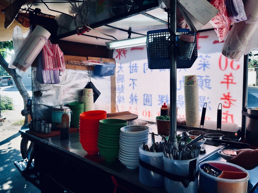 一台餐車,附加幾張桌椅給客人坐著吃,後有可以停放2台車子的小空地。