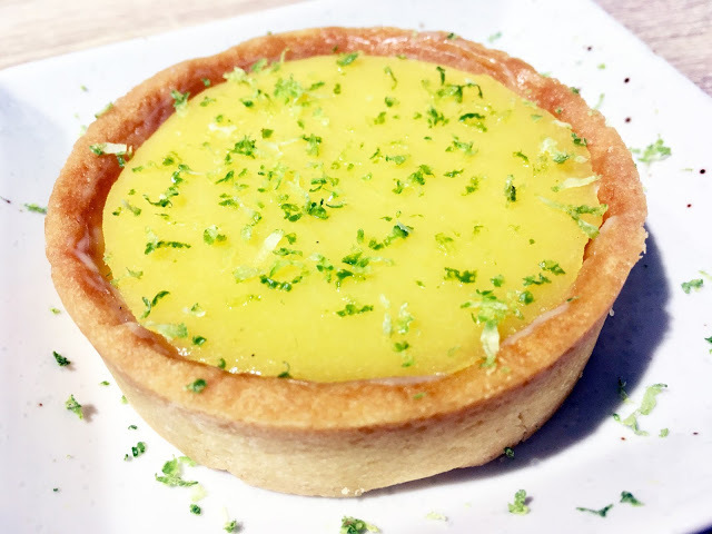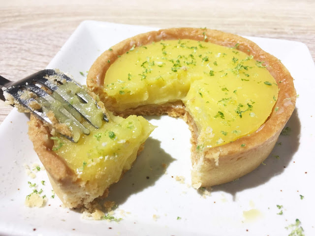 灑滿檸檬皮的「檸檬塔」,視覺和口感一樣清爽,試吃一小塊,整口滿是檸檬的清香,酥脆可口的塔皮和酸甜柔滑的檸檬餡,是十足迷人的法式美味。