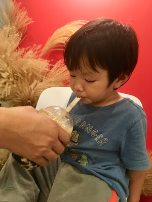 媽媽朋友和我點的飲料都上桌了,小孩也順利睡著了,媽媽們美好的下午茶時光終於要開始啦!