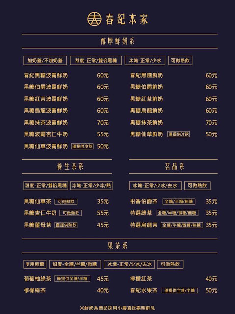 大部分的「黑糖波霸鮮奶」差異在於鮮奶品牌、黑糖波霸和配料的不同,但最近回台北時發現八德路上有家爆紅的「春紀本家」,有各種創新口味的「黑糖波霸鮮奶」,像是:杏仁、抹茶、伯爵、烏龍、仙草...等,每每經過都大排長龍,身為黑糖鮮奶控實在很想喝喝看啊!
