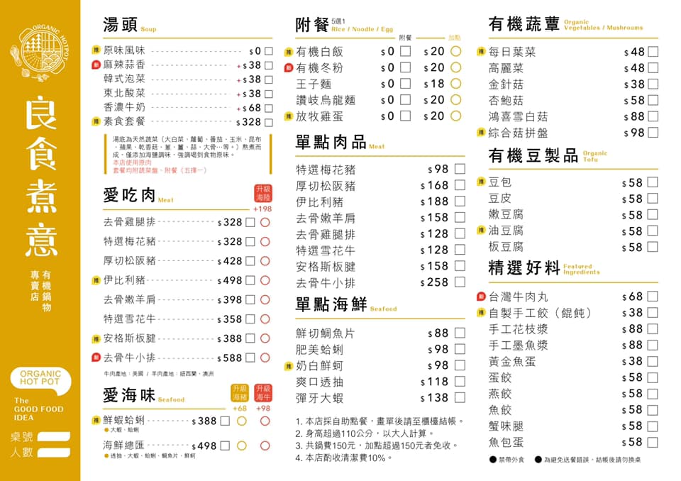 良食煮意不僅是目前台中的唯一新鮮認證葉菜吃到飽,而且在湯頭、各種肉品、海鮮、蔬果都能看到店家的堅持,加上店家本身就是各大連鎖認證食材通路的供應商,所有食材的來源都更加透明,同時還能兼顧美味!吃完就馬上收入我們的愛店口袋名單啦~