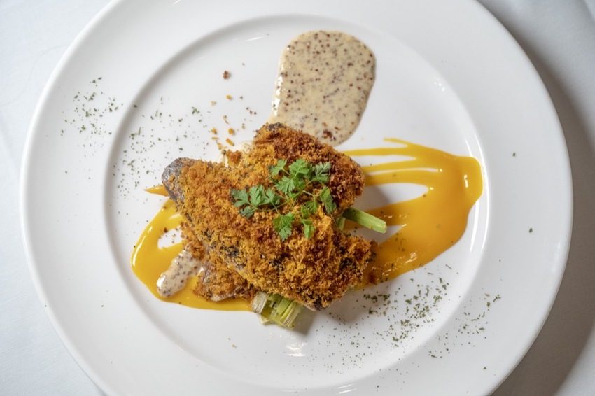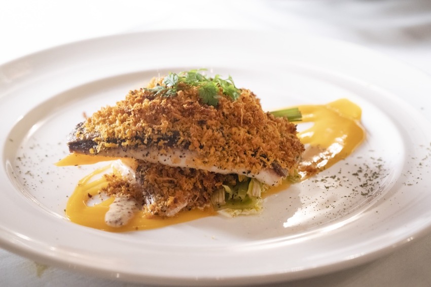 法式風味嫩煎海魚與芥末籽奶油芒果醬