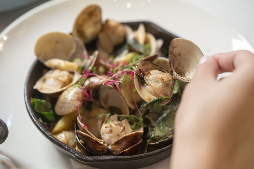 肥美的蛤蜊有白酒的清香,搭配濃郁的九層塔香氣~