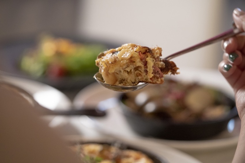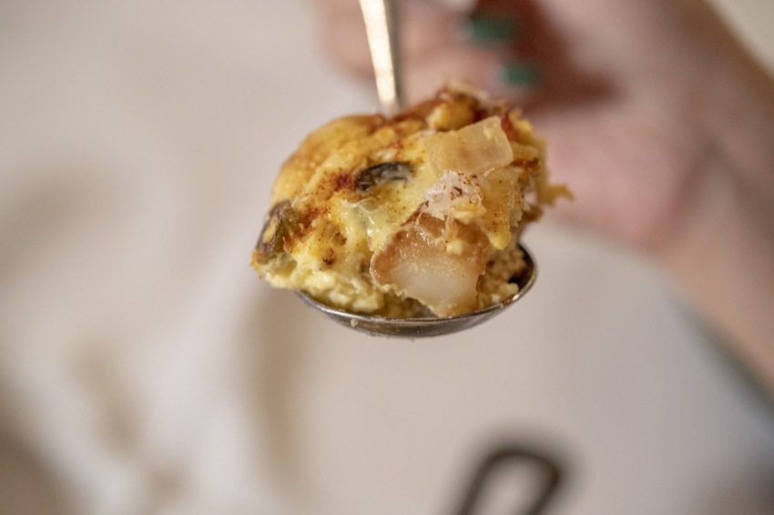 黑橄欖、綠橄欖、洋蔥、馬鈴薯切塊有豐富的口感與烘蛋的軟嫩~西班牙烘蛋的香氣一上桌,大家直呼好餓!!