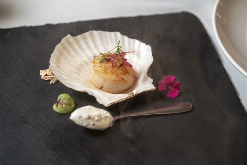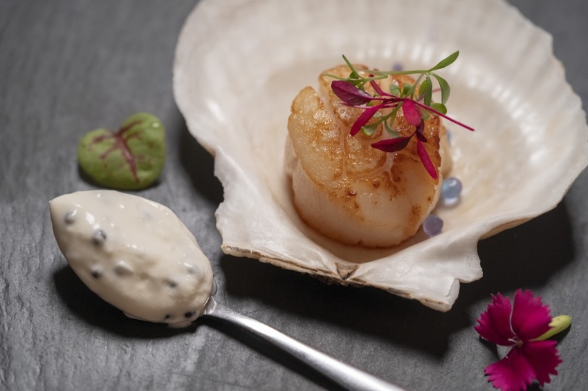 楓木煙燻北海道干貝佐松露魚子醬奶油