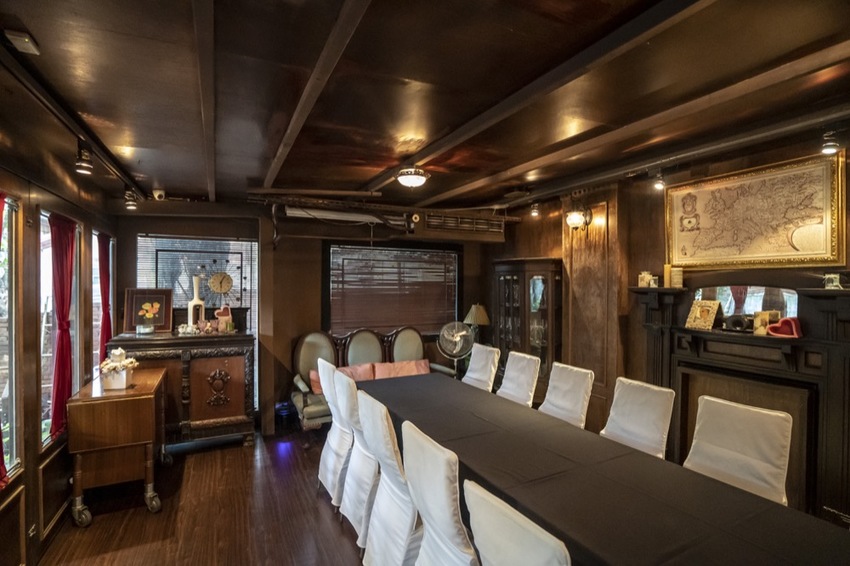 外觀看似尋常的私人住宅 但在一入門後眼見的是各式懷舊復古陳列品跟吊掛著華麗水晶吊燈