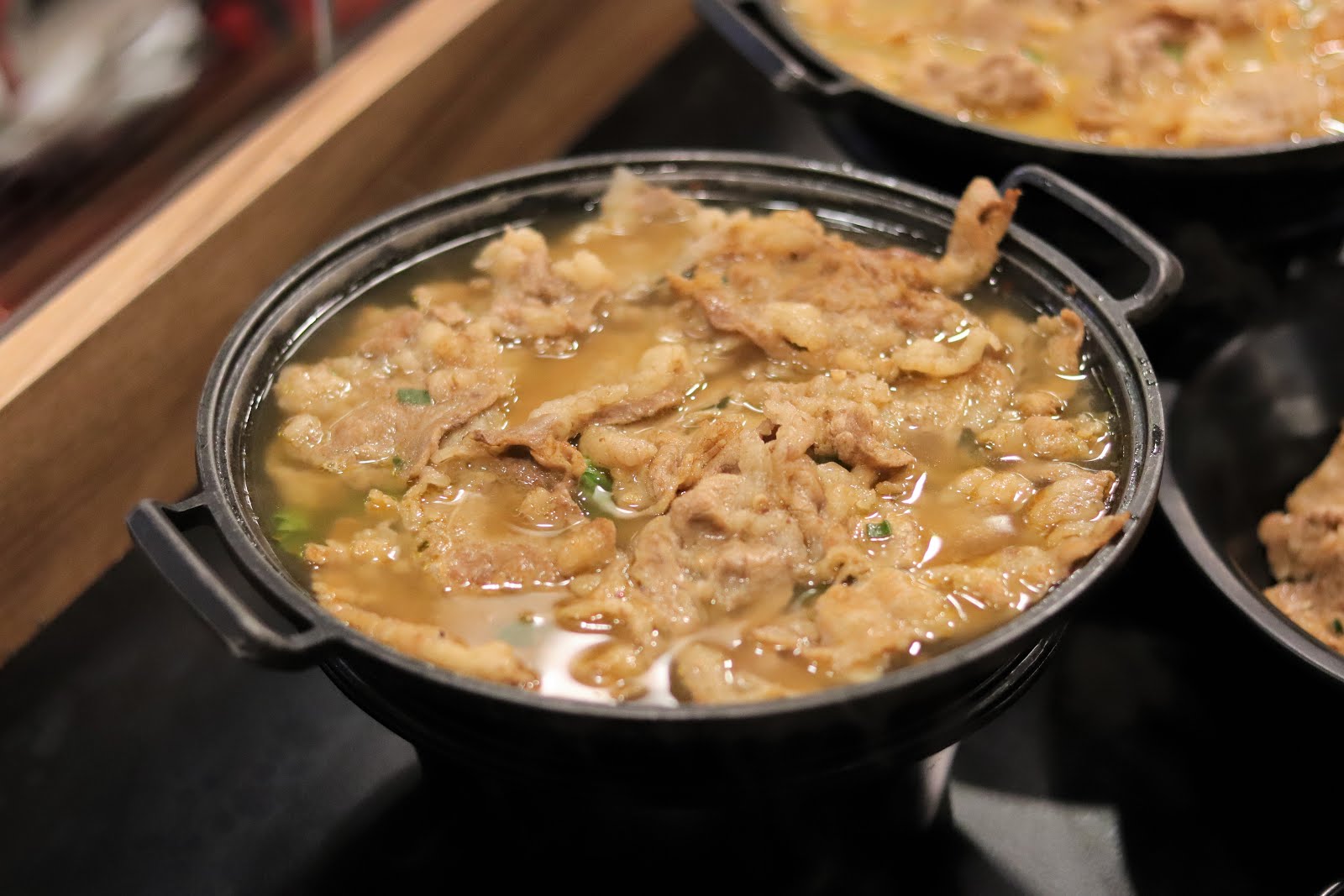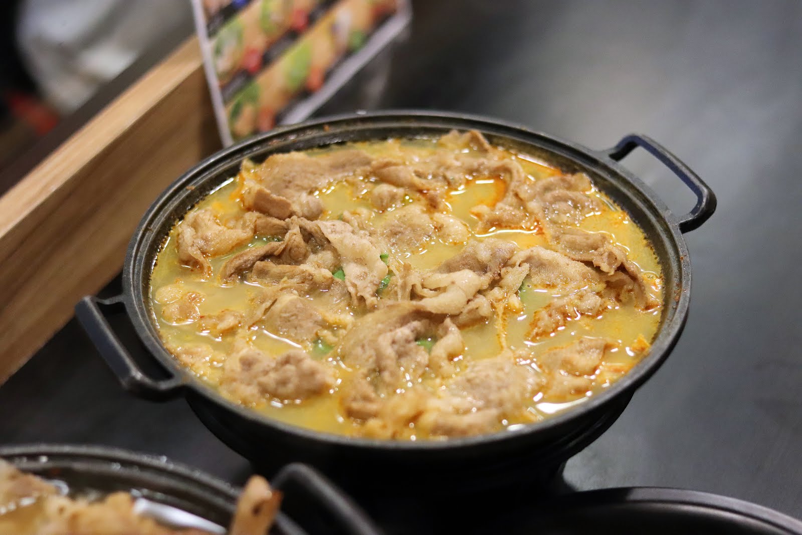 外表看似簡單,但是味道蠻特別的蜂蜜芥末照燒飯,使用的是牛肉,將牛肉與蜂蜜結合吃起來帶點淡淡的香甜,也可以說成蜜汁的口味,會讓人一口接著一口,肉也很軟嫩,但是整體吃起來比較單調,因為只有肉和白飯,所以大家也可以點一個火鍋再加點照燒飯!我想應該可以吃得很滿足吧~喜歡吃蜜汁的朋友可以嘗試看看! (( 我要吃肉肉~~